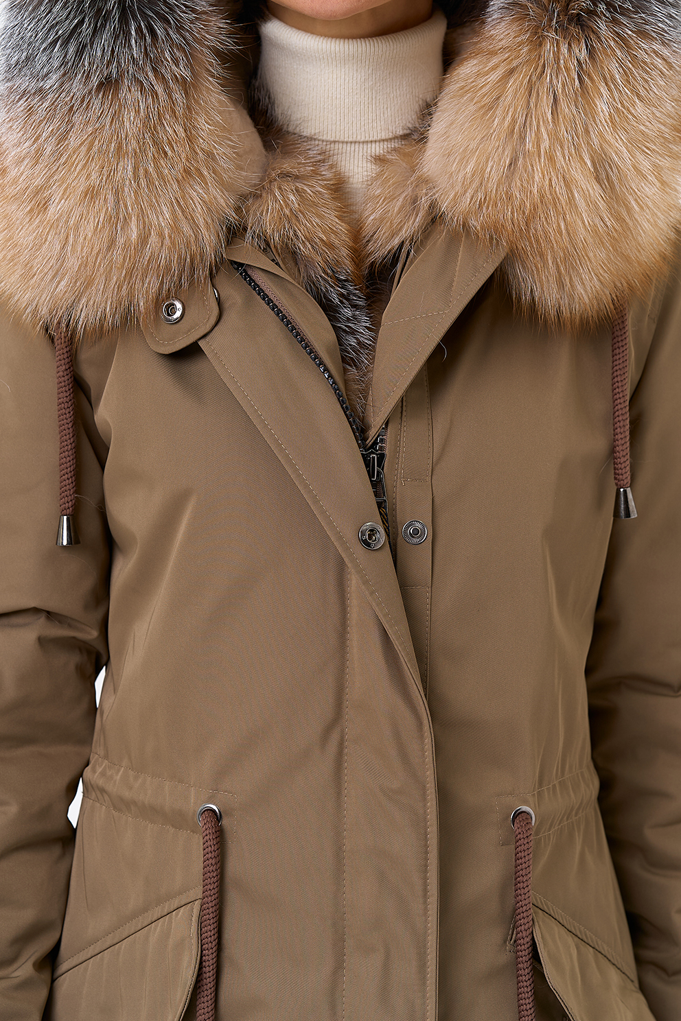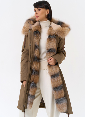 Крой воротника - капюшон, отделка лиса Otoban, овчина