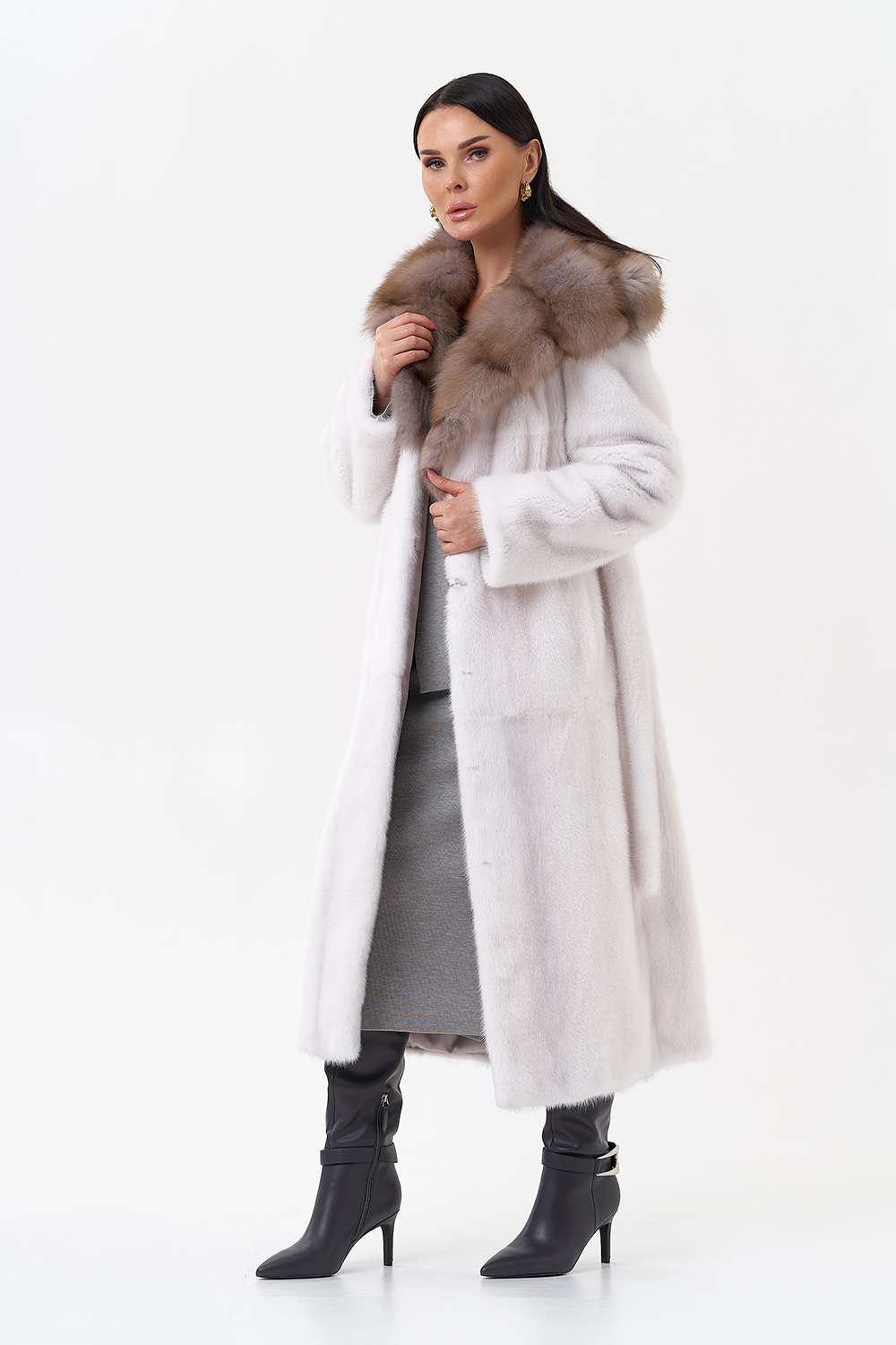 Тип ворота - капюшон, отделка куница