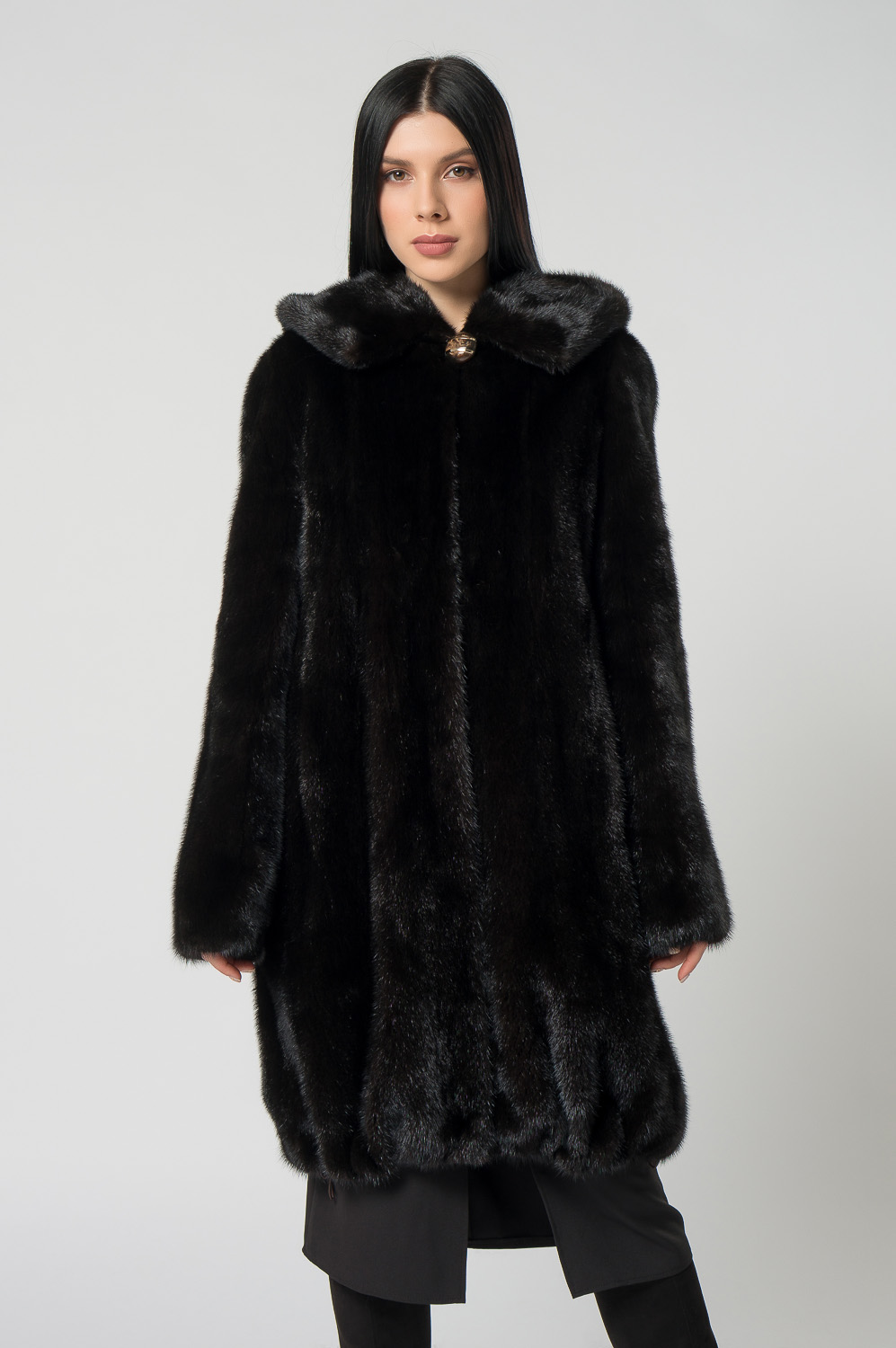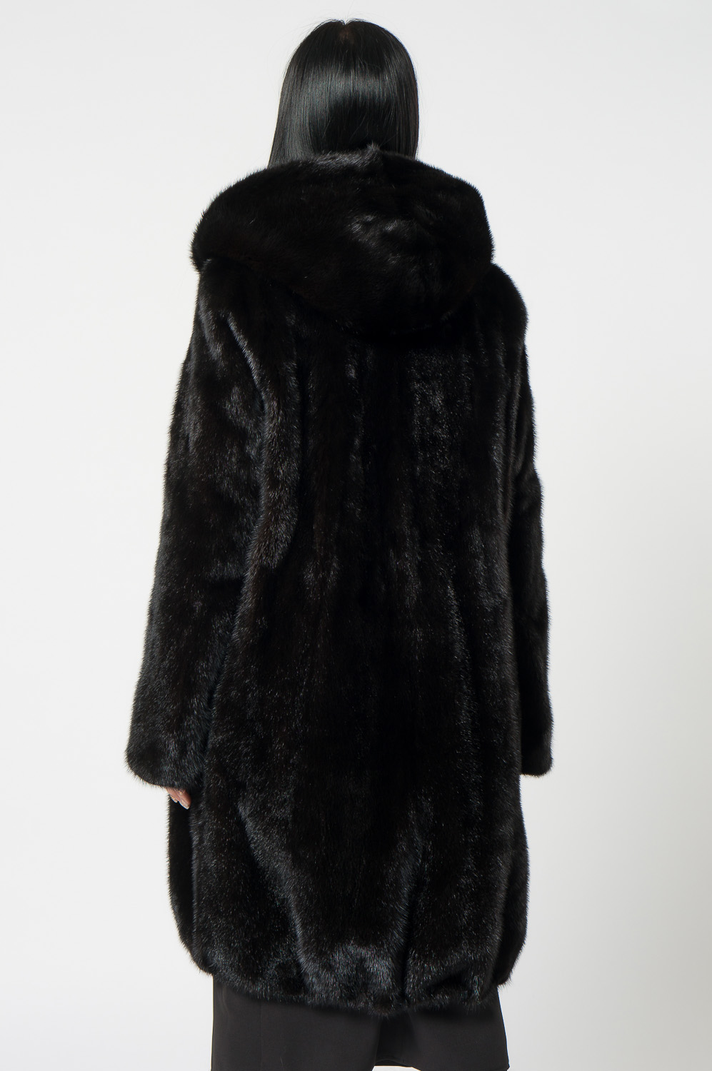 Шуба из норки с капюшоном, кулиска